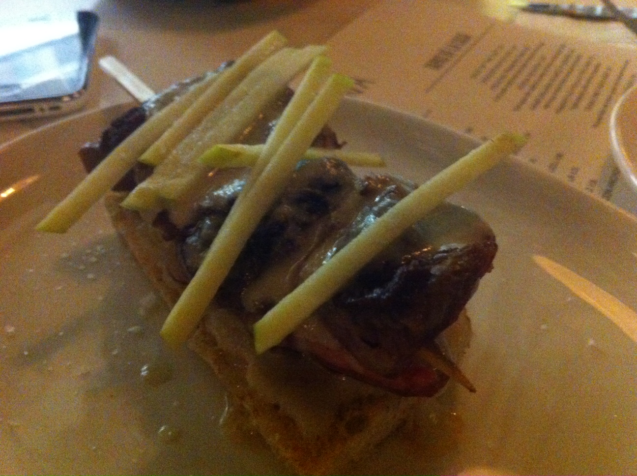 Now on to the bad. The ribeye dish was served in the style of a pintxo. By this they meant served on some soggy bread. The meat itself was good quality but was undercooked, there was not enough cheese sauce, which was the best part of the dish, and the matchsticks of apple added nothing, it just didn't work for me.